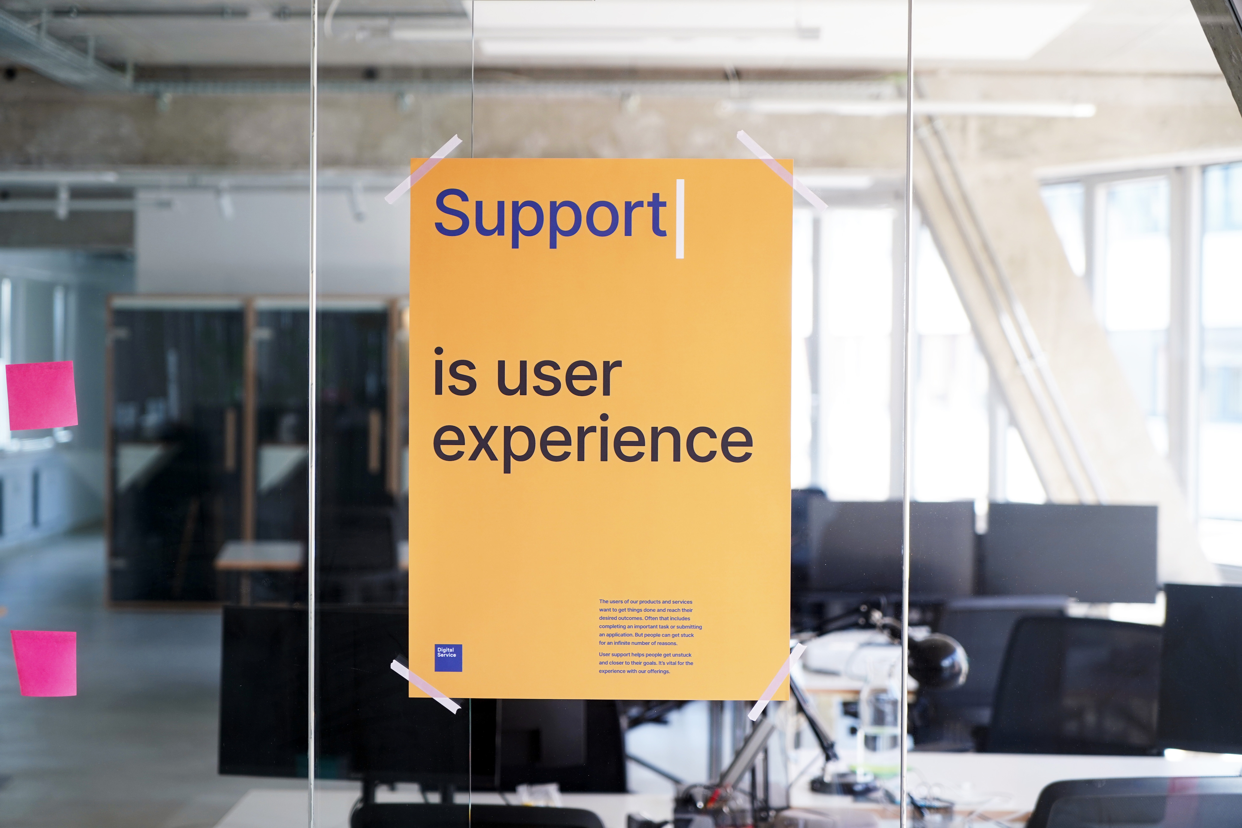 Das Poster unterstreicht die immense Bedeutung von Nutzer-Support. Es verdeutlicht, dass guter Support nicht nur eine nachgeschobene Aktivität ist, sondern zentral für die Erfahrung ist, die Nutzende mit einer Verwaltungsleistung im Speziellen und damit letzten Endes mit der Verwaltung insgesamt machen.